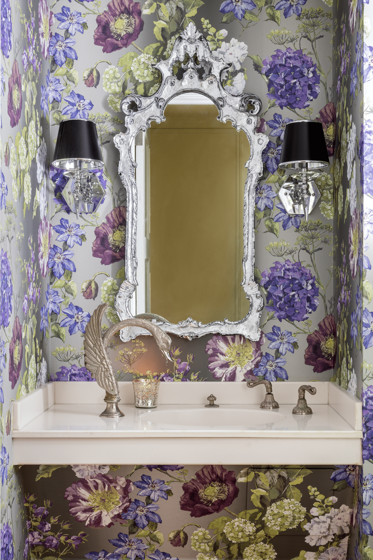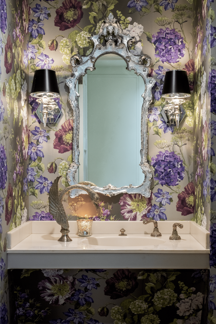 Powder rooms are one of the most frequently visited spaces by guests, they offer the perfect opportunity to make a lasting impression. At Stella Ludwig Interiors, we see them as little jewel boxes—a chance to infuse charm and take creative risks. With bold colors, playful patterns, or luxe finishes, these small spaces can elevate your entire home. This powder room is a serene escape, inspired by the soothing hues of lavender fields and the gentle elegance of water fountains. Soft and vibrant purples paired with silvery tones blend seamlessly creating a cheerful and inviting space.