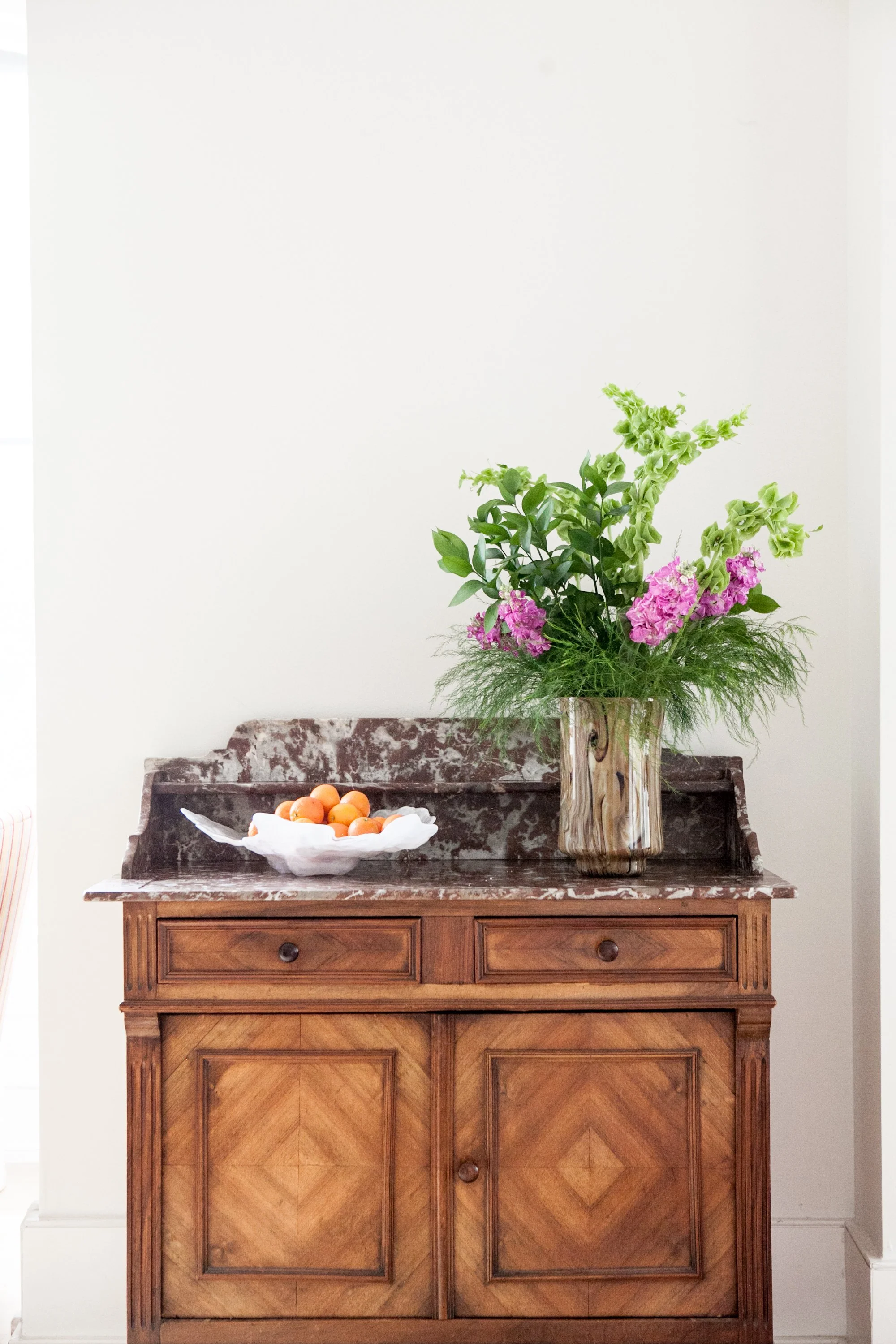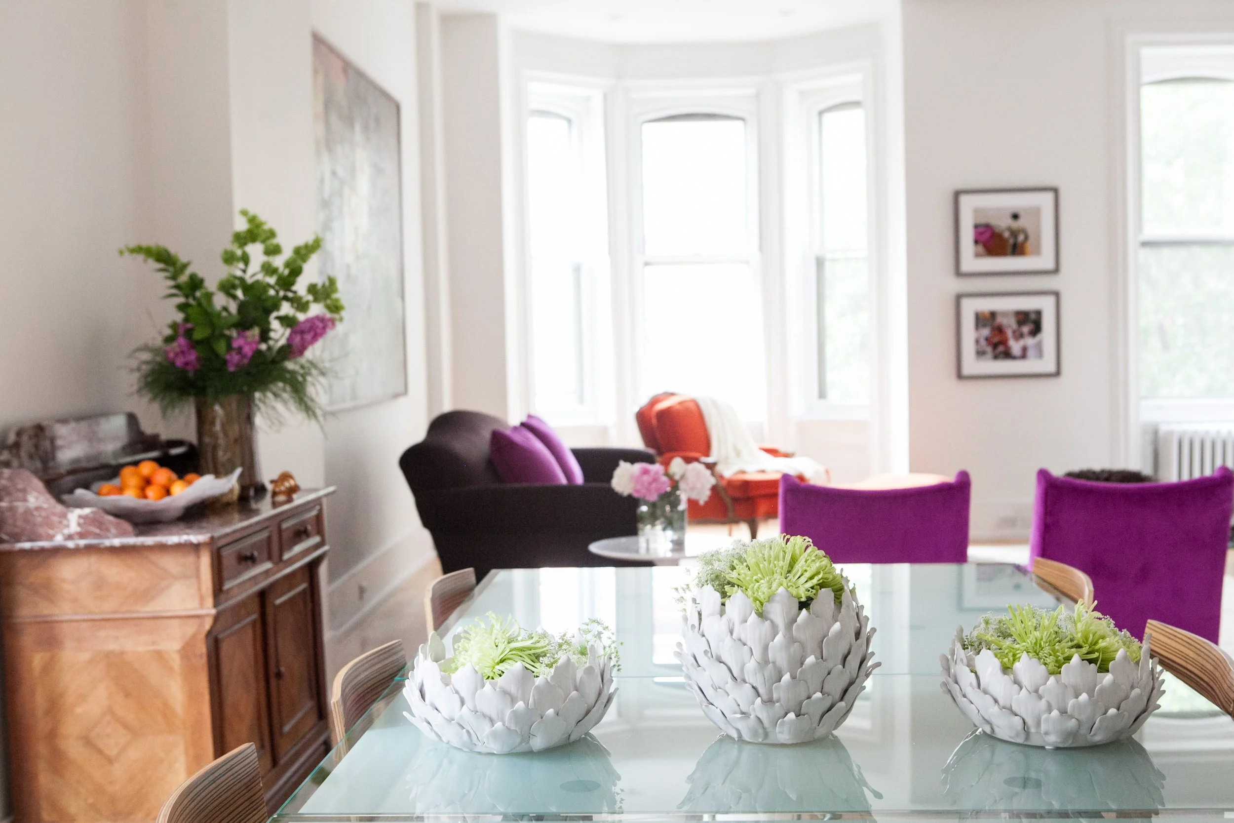 This family room radiates comfort and coziness with its plush seating. A bright color palette, highlighted by vibrant furniture accents, brings energy to the space. A large, inviting lounge chair set beside the window, creates a perfect relaxation spot. The client’s playful artwork and the rug’s subtleness creates a dynamic yet homely vibe. This welcoming space encourages everyone to gather, relax, and enjoy quality time together.